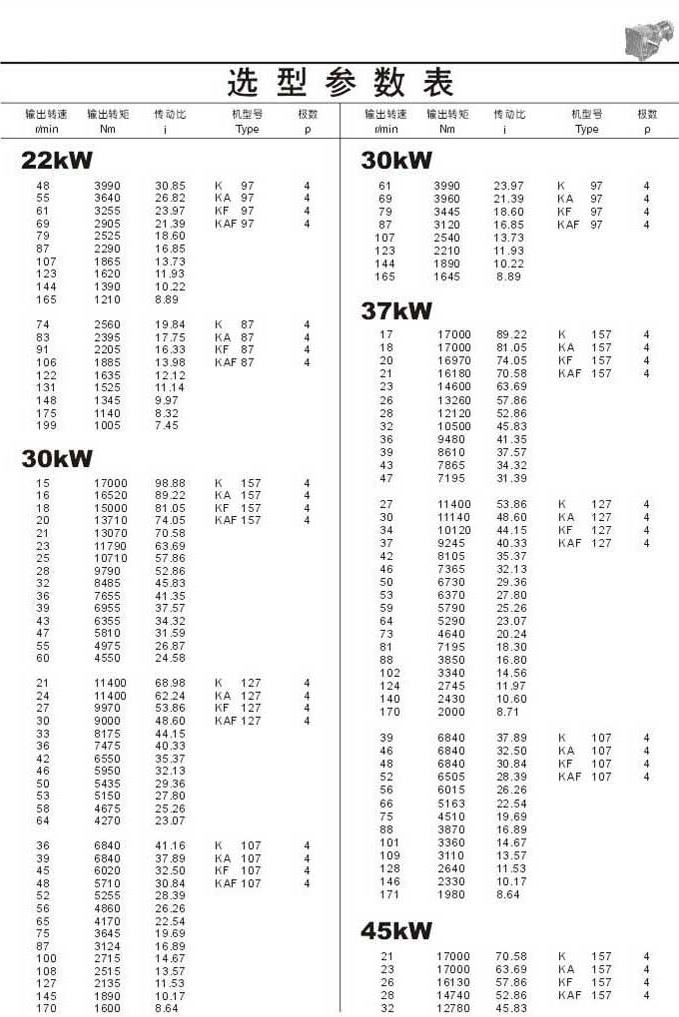 選型參數(shù)表22kW (續(xù)),30kW ,37kW ,45kW