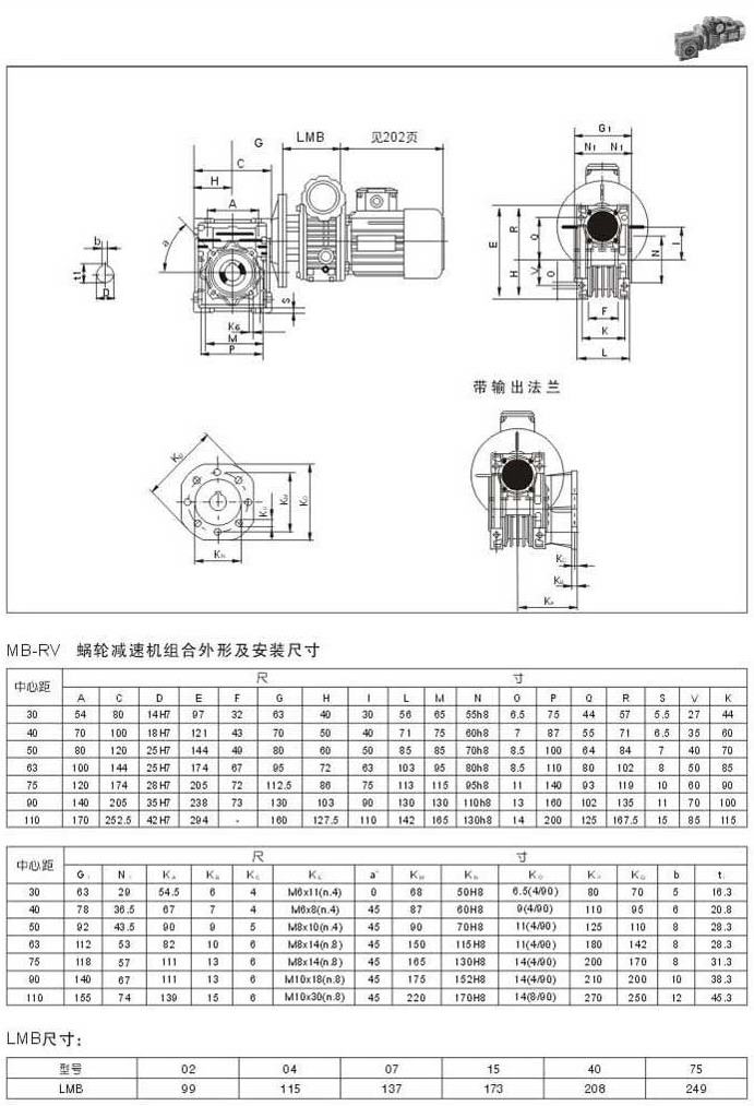 MR-RV蝸輪減速機組合外型及安裝尺寸LMB尺寸