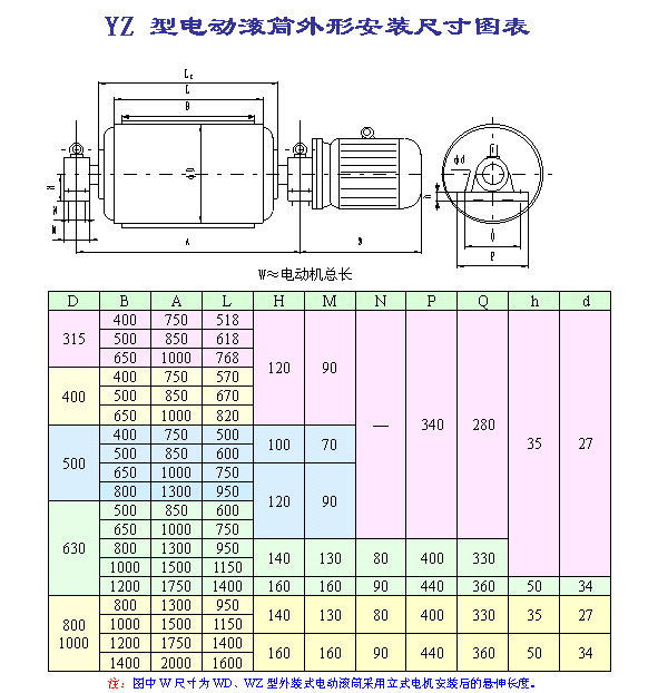 YZ 型擺線針輪油冷式電動滾筒系列參數(shù)表: