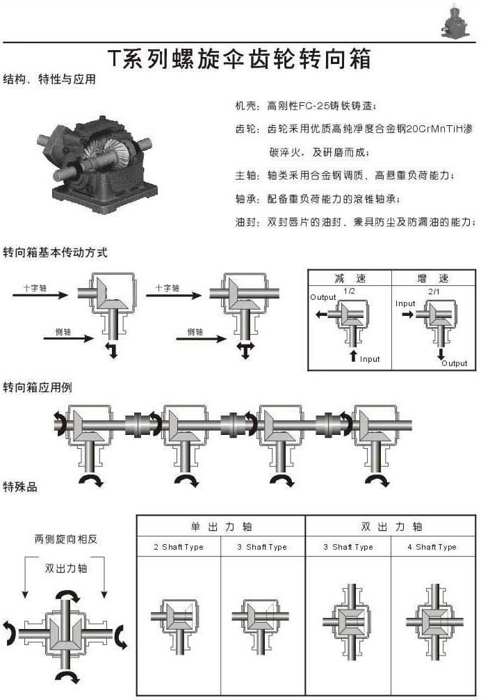 T系列螺旋傘齒輪轉(zhuǎn)向箱結(jié)構(gòu).特性和應(yīng)用,傳動方式,應(yīng)用例