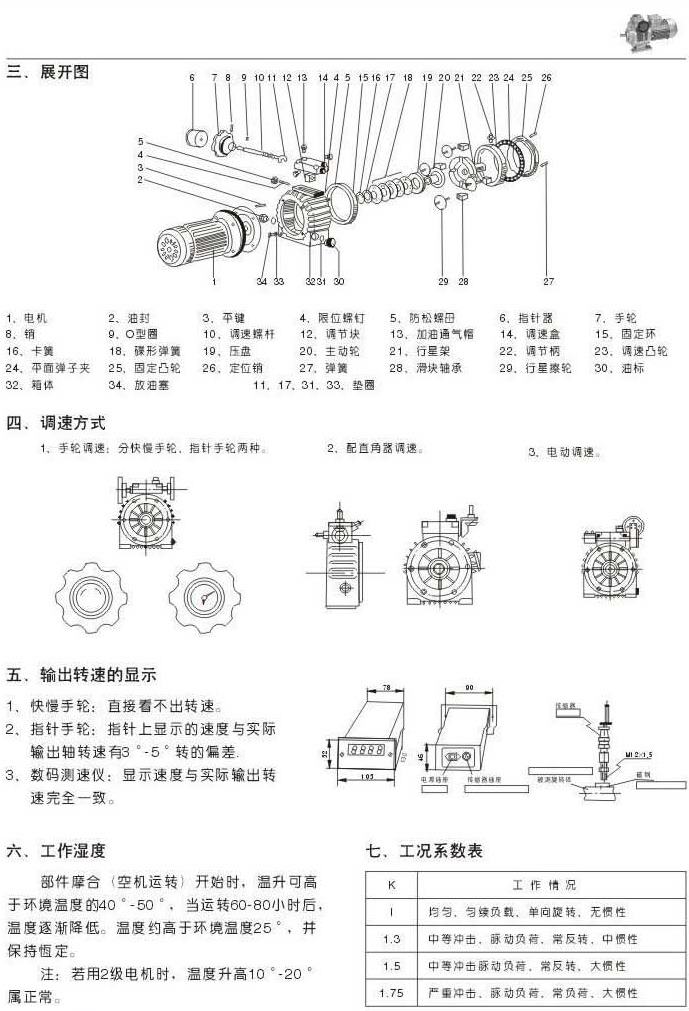 結構展開圖調速方式輸出轉速的顯示工作濕度工況系數(shù)表