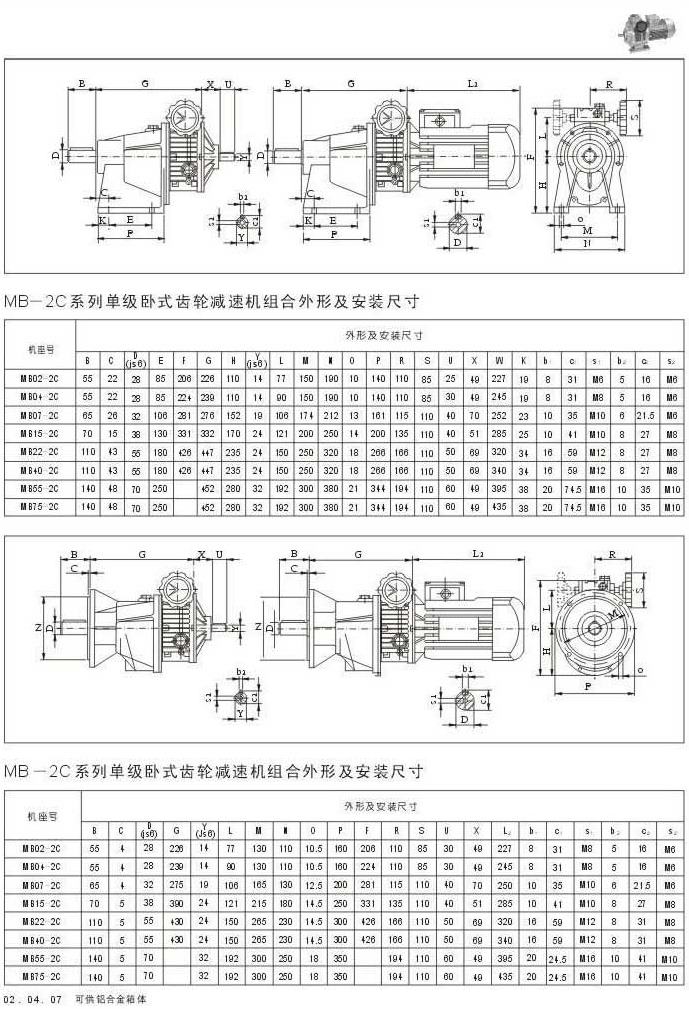 MB-2C系列單級(jí)臥式齒輪減速機(jī)組合外型及安裝尺寸???MB-2C系列單級(jí)臥式齒輪減速機(jī)組合外型及安裝尺寸???